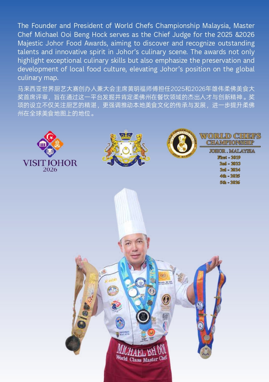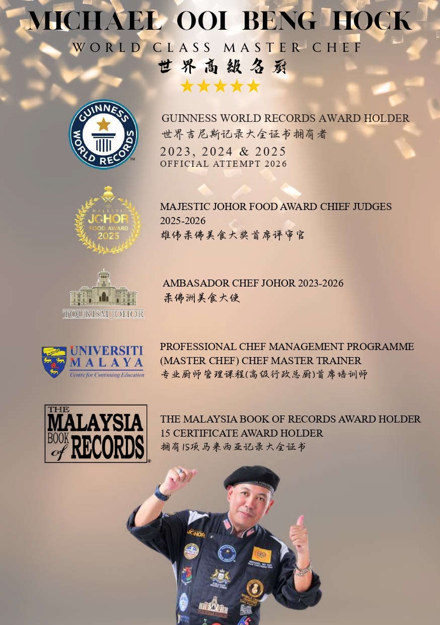 在Chef Michael Ooi的世界里,热情、创新和精湛技艺交汇,创造出令人惊叹的美食奇迹。从厨房学徒到高级行政总厨,Chef Michael Ooi用他的热情和才华为每一道菜品注入灵魂,让味蕾在美食的海洋中尽情航行。