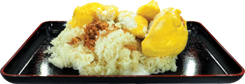 将蒸熟的糯米倒入炒锅中(2),继续搅拌至充分混合,关闭火源,待凉后与猫山王榴莲一同享用。