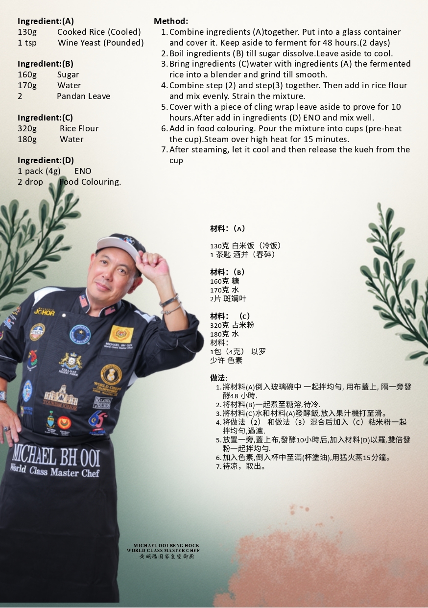 清洗并沥干糯米,用高温蒸煮糯米与香兰叶1小时。每隔一小时撒些水在糯米上,并搅拌,直至煮熟。